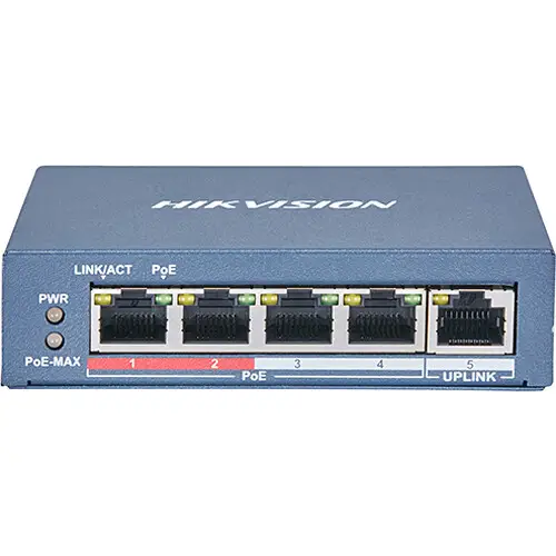 Hikvision DS-3E1105P-EI – سويتش شبكة 4 منافذ POE