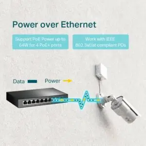 • أنظمة المراقبة: مثالي لتوصيل كاميرات المراقبة وأجهزة Access Points التي تدعم PoE بفضل قدرة 64 واط.