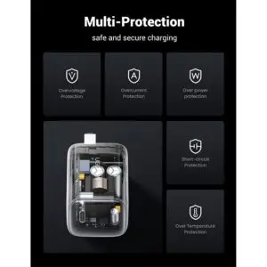 • الأمان: مزود بنظام حماية ضد الشحن الزائد، التيار الزائد، وارتفاع الحرارة، مما يضمن أمان الأجهزة أثناء الشحن.
